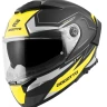 Шлем доступен в нескольких размерах, что позволяет подобрать идеальную посадку для каждого. Прозрачный визор, совместимый с системой Pinlock, защищает от запотевания и обеспечивает отличную видимость в любых условиях. Быстрая замена визора осуществляется благодаря системе QVSS+, что позволяет легко адаптироваться к изменяющимся погодным условиям.