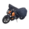 - ОбзорStrong double stiched water-resistant motor cover. On inside made with a non-scratching material. Includes a storage bag. Special fit with elastic hem, also suitable for quad and scooter. Size: - M: 203 x 89 x 119 cm.