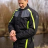 Для защиты от ударов на локтях и плечах установлены надежные протекторы, которые можно регулировать по высоте для достижения наилучшего эффекта. Внешние и внутренние карманы дают возможность удобно хранить необходимые вещи, а короткая застежка-молния обеспечит надежную фиксацию куртки с мотоциклетными брюками.