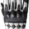 Белая краска шахматного узора на верхней части мотоперчаток John Doe Tracker Race стирается при влаге очень быстро. Через короткое время появляется заметный вид использованных перчаток. Это следует учитывать. Я думаю, было бы полезнее сшить узор из разноцветной кожи. Несмотря на это, перчатки в повседневном использовании сначала производят солидное впечатление.